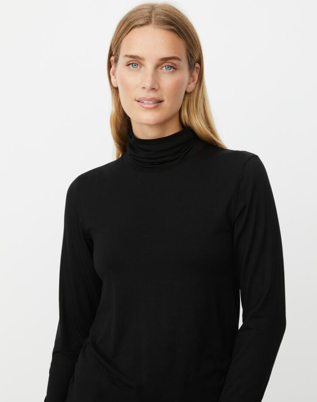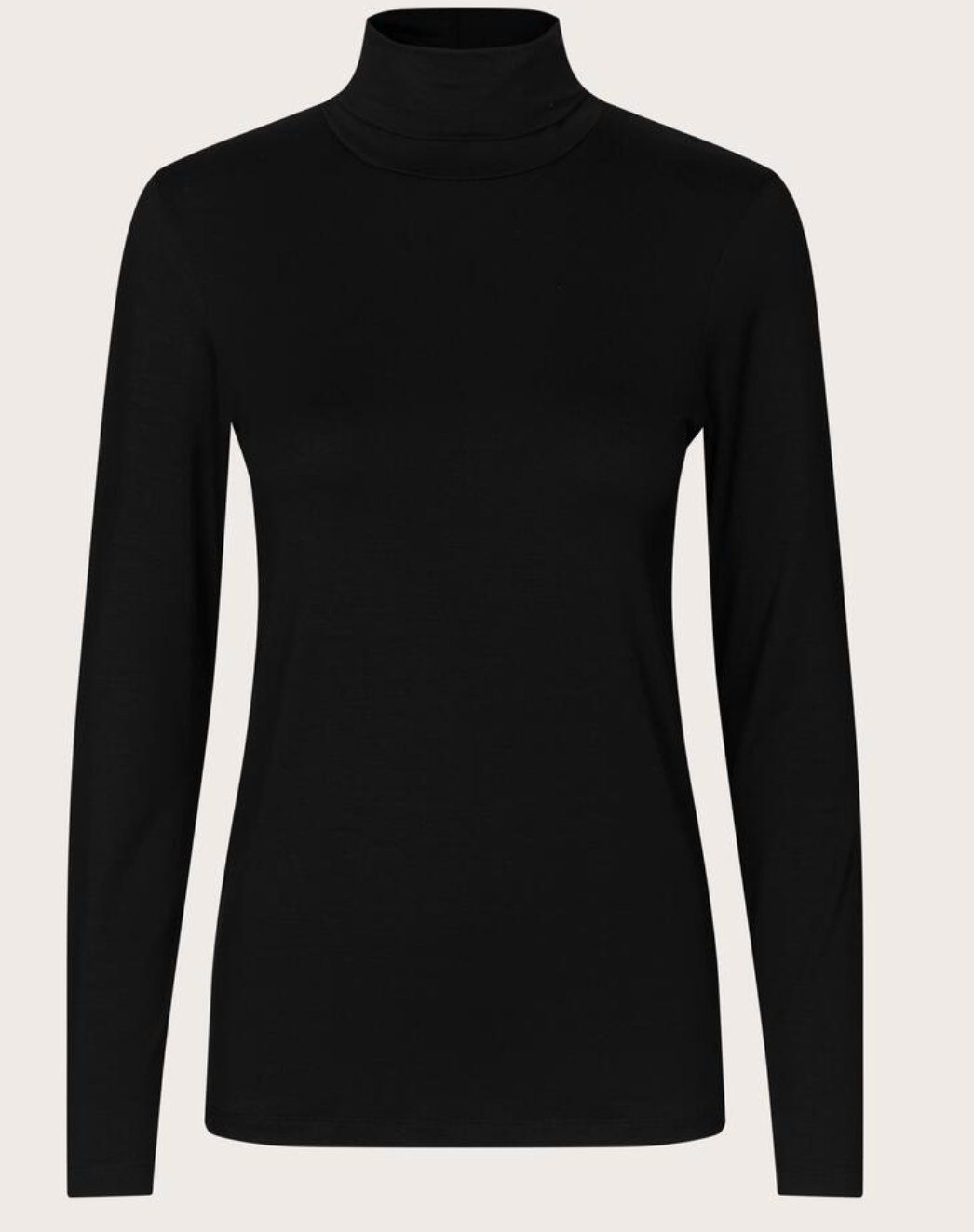 The turtleneck is back – and for good reason. Here it is in BLACK, in a thin and super soft jersey version with lyocell that is a dream to wear. The top has a body-hugging fit with straight lines, so it works well as an extra layer under a dress, shirt or vest, but you can also wear it alone for a casual, stylish look.