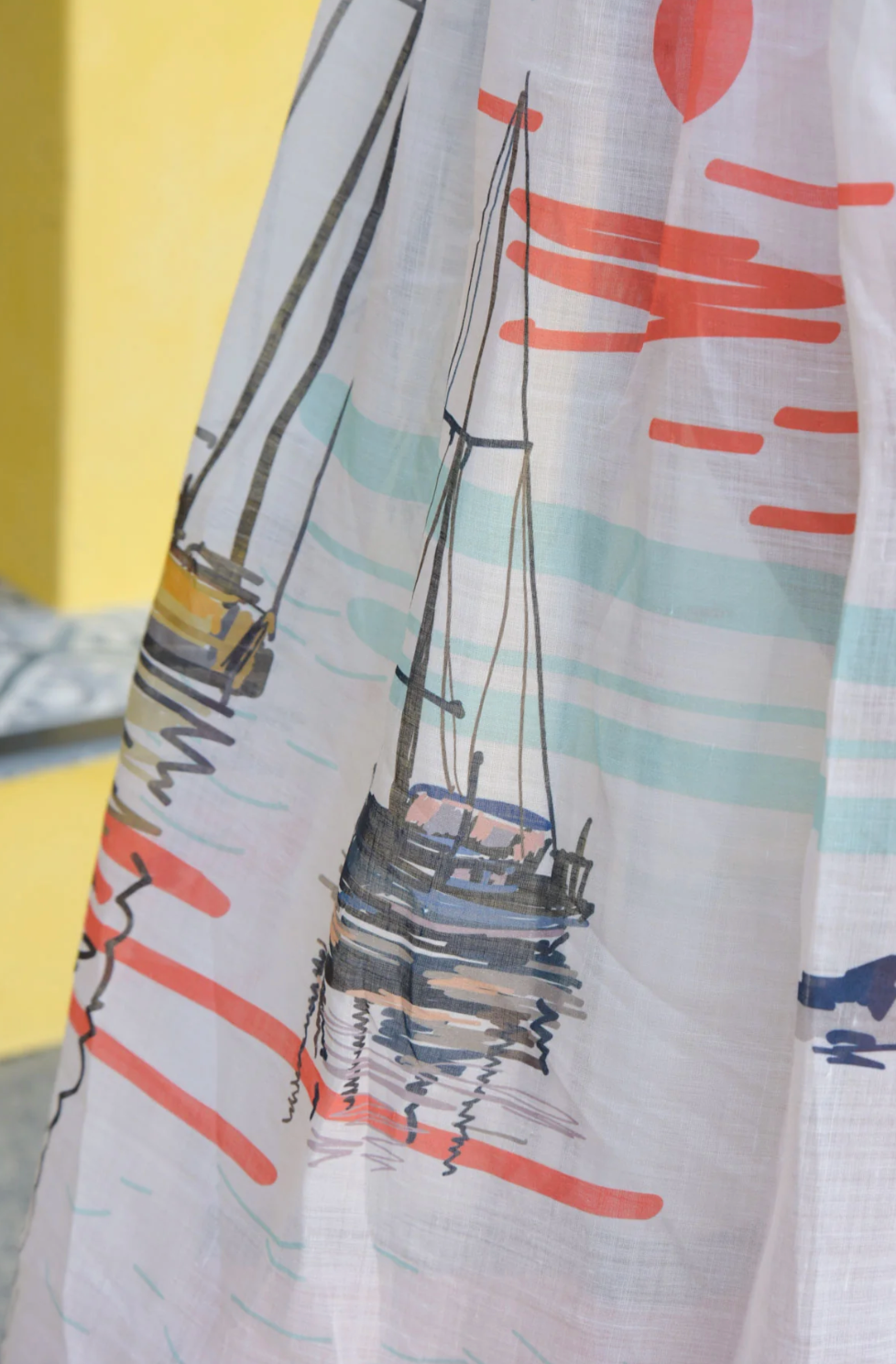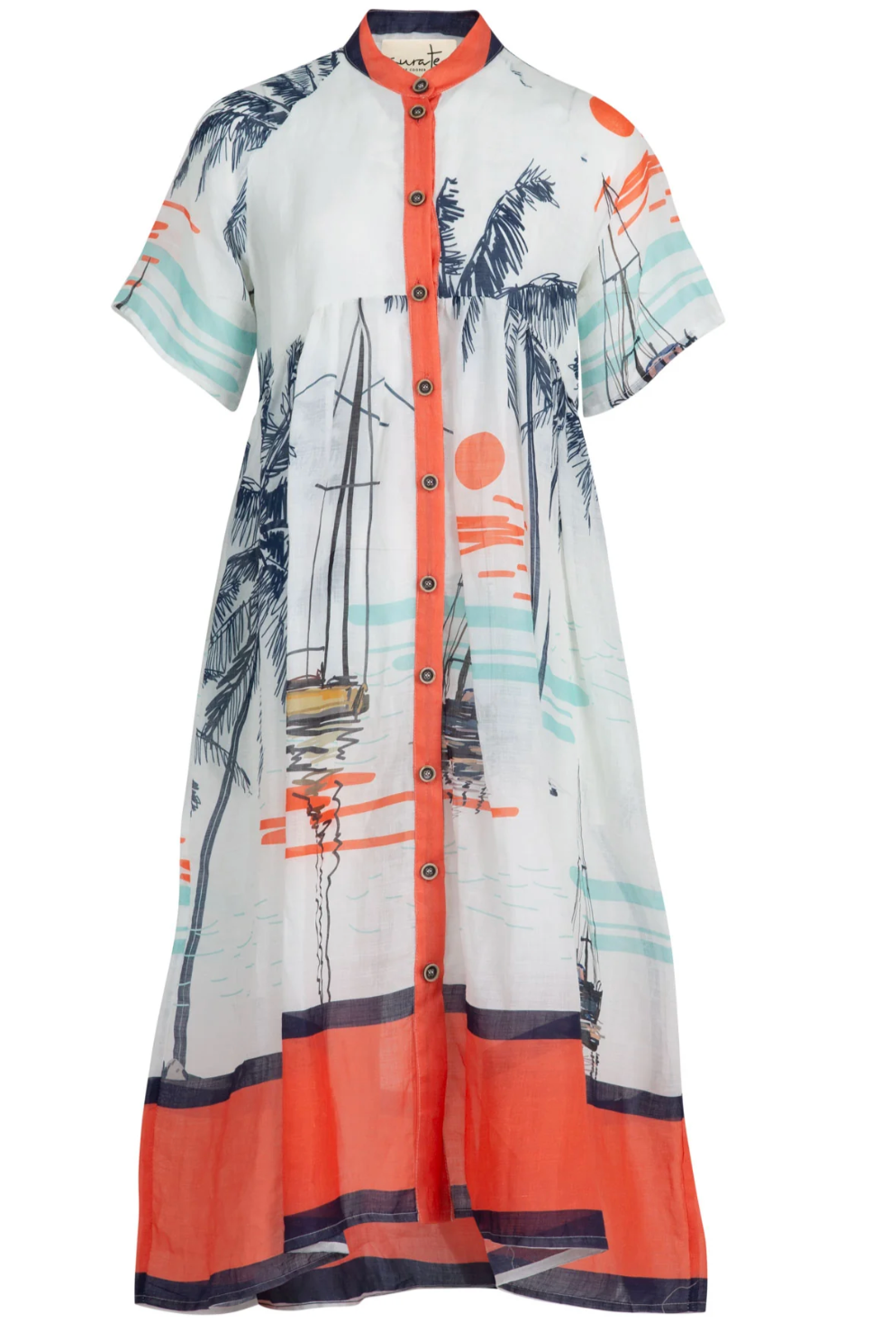 Fusing modern colour blocking and a whimsical, gauzy fabric, the ‘Don’t Make Waves’ dress compliments both casual and smart dressing. Sporting a button through front, raglan inset sleeves and gathering that falls from the waistline, this dress wears like a summer breeze granted by its 'Float Your Boat' cotton ramie blend.