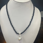 ELFY Black Lava Rock and Pearl Necklace