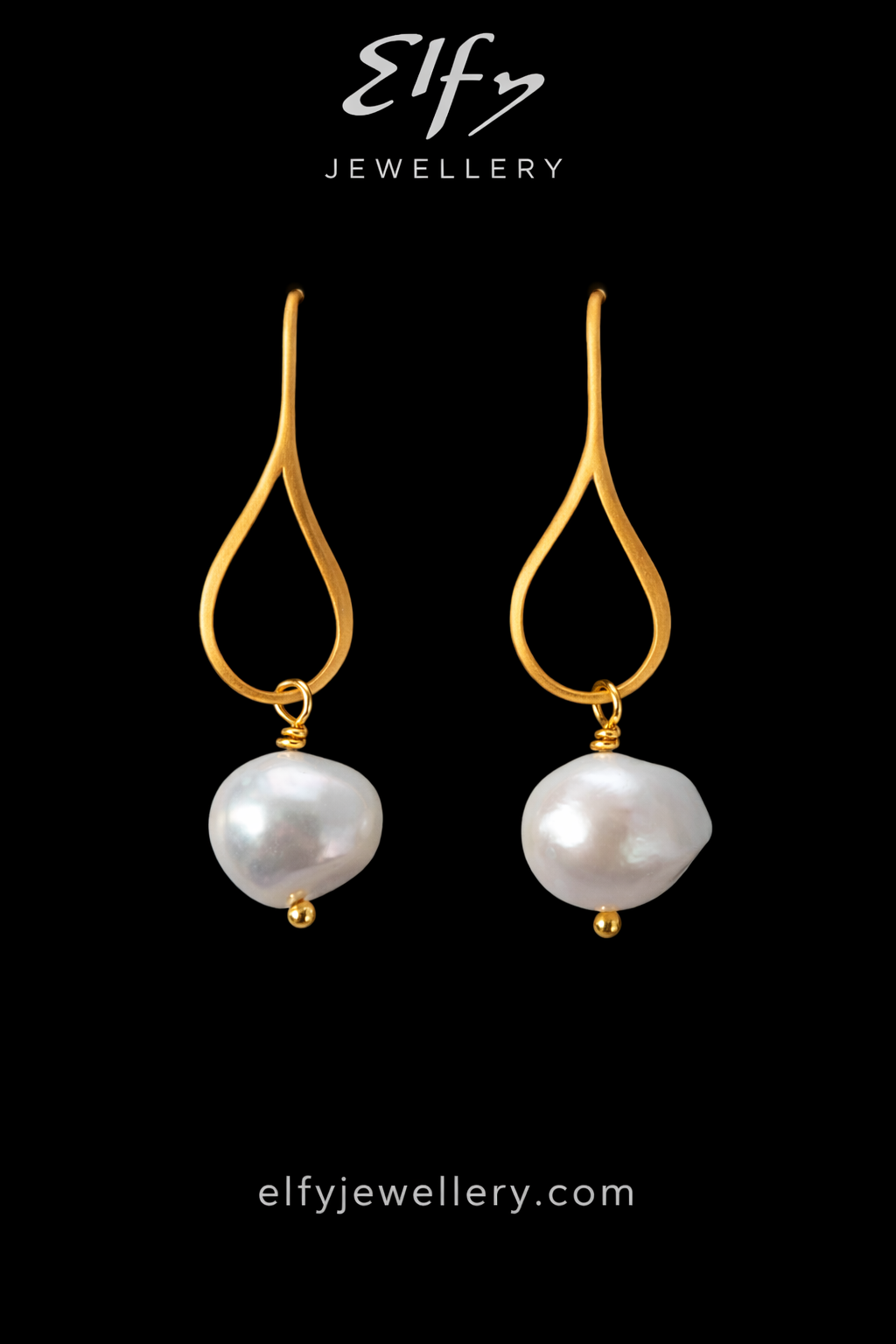 ELFY Gold and Pearl Teardrop Earrings