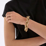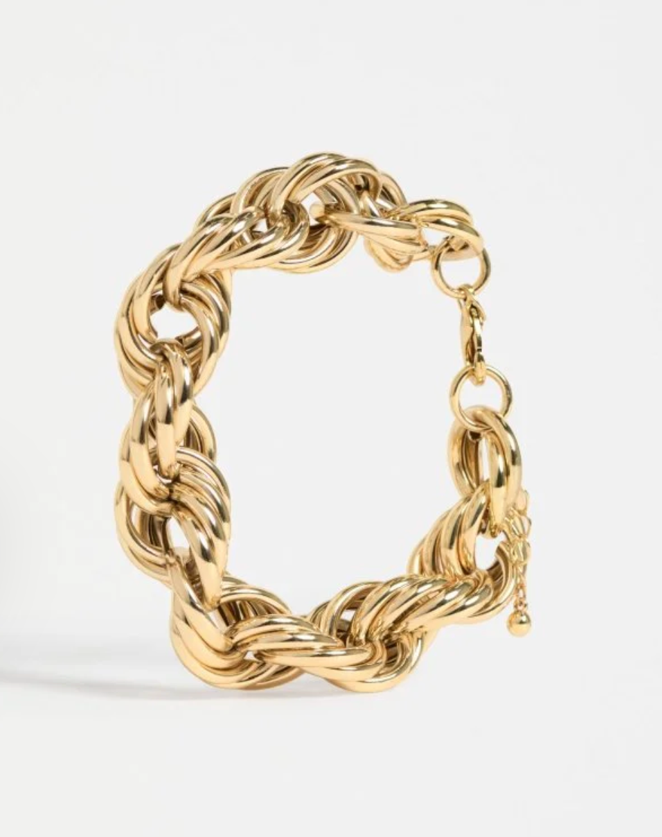 The Reppen Bracelet is a statement, chunky bracelet style made from layered, interlocking round links creating a unique rope-like pattern. This bracelet adds a touch of edge and glamour to any outfit while coordinating beautifully with the matching Reppen Necklace.