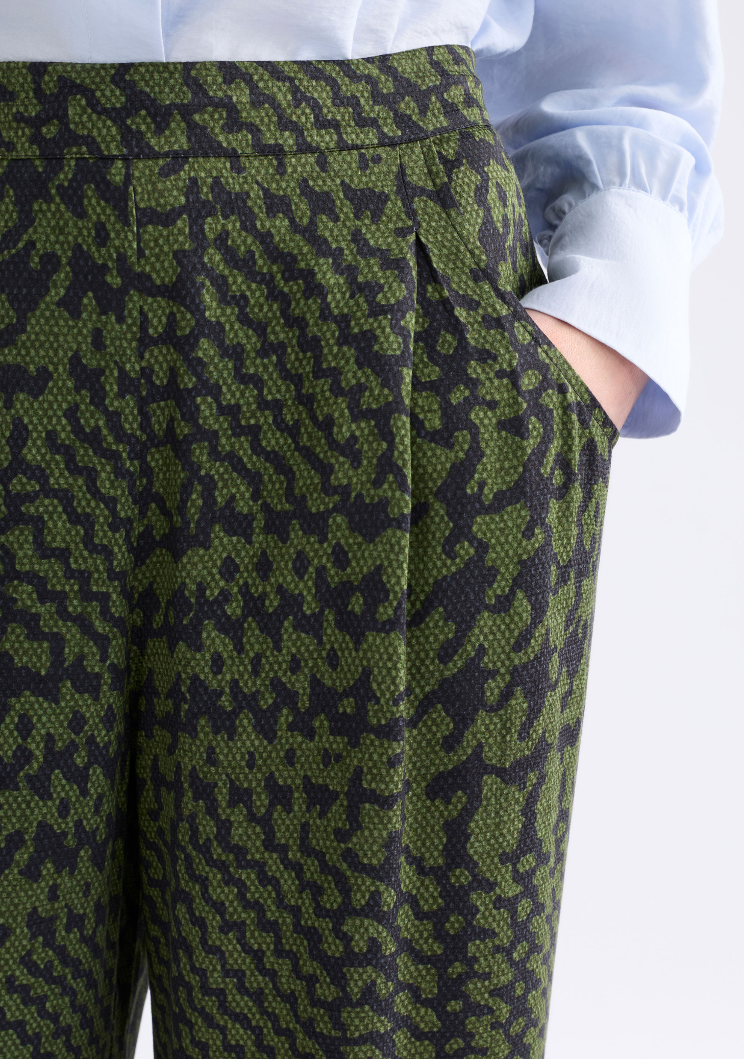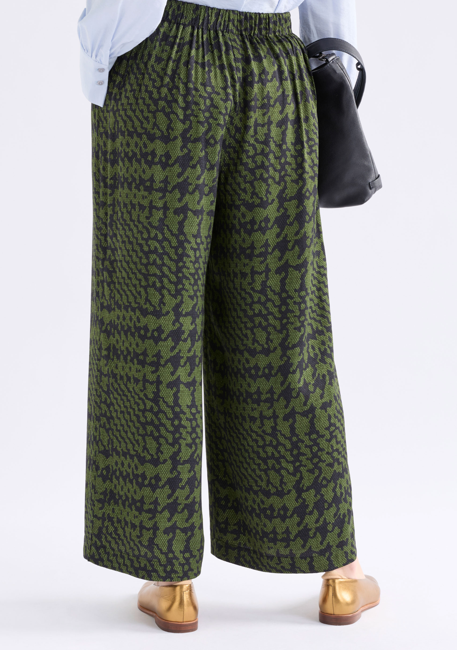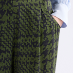 The Mitte Pant is based on an ELK favourite cut, with a wide-leg, crafted from textured, silky crepe fabric printed in the Portus Print - a modern take on a houndstooth. These regular fit pants have a mid-rise, flat front waistband with internal waist tie for a customisable fit, elastic back waistband and curved front pockets. The front tucks add volume to the wide-leg silhouette, while the pull-on design with full length leg creates an easy, comfortable design. Pair with the Mitte Coat for a coordinated ensemble or a classic block colour top or shirt to let the print shine.