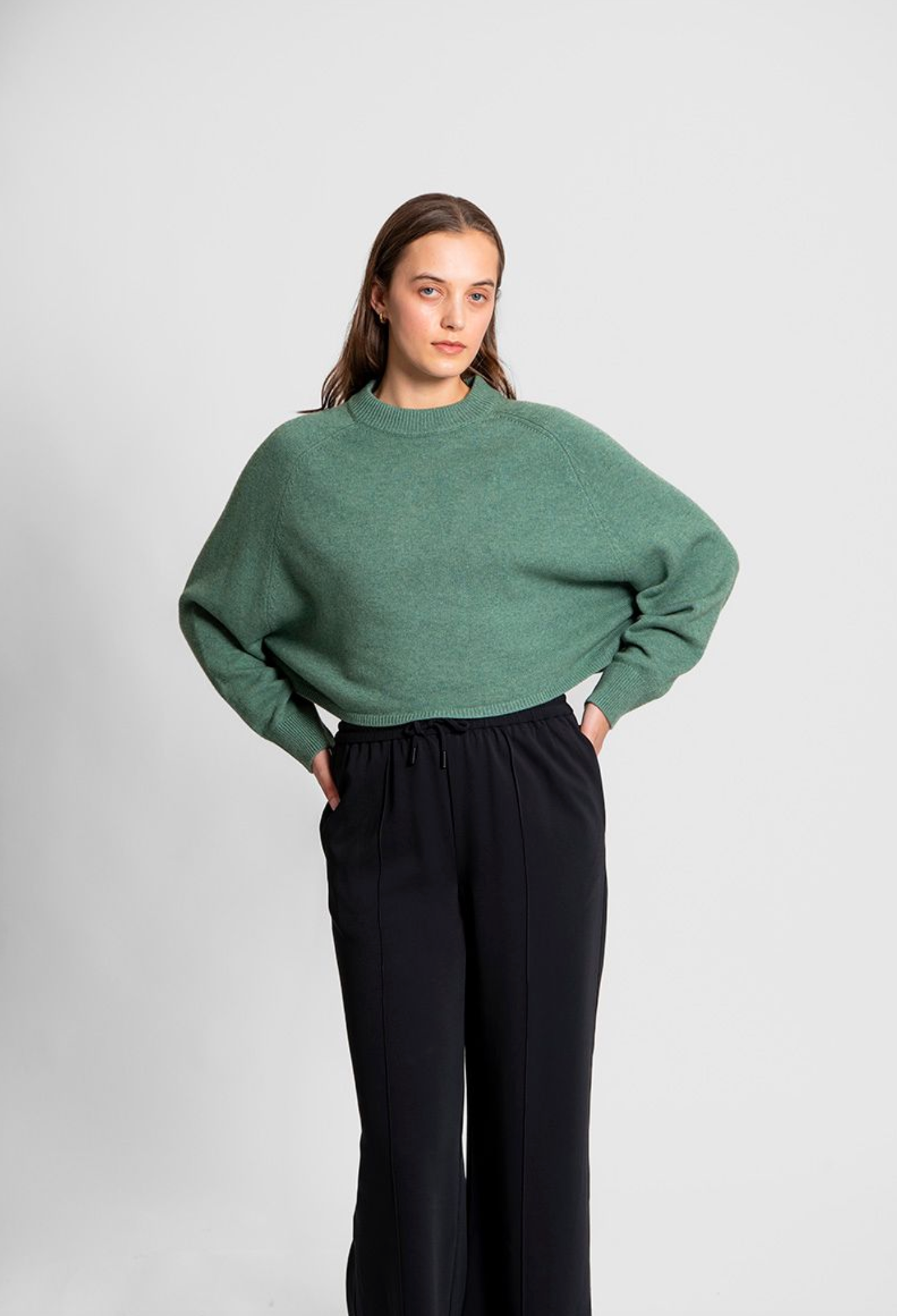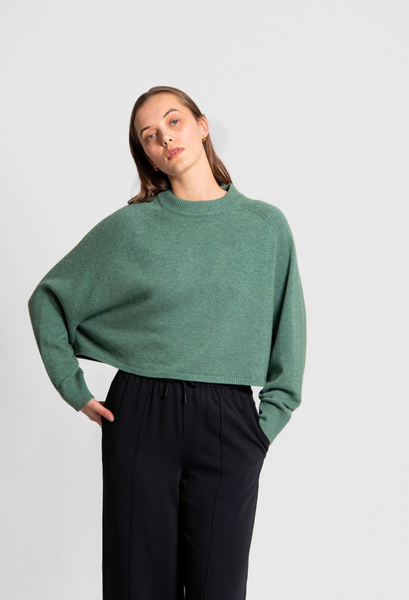 • Features a loose, batwing sleeve with a saddle shoulder silhouette
