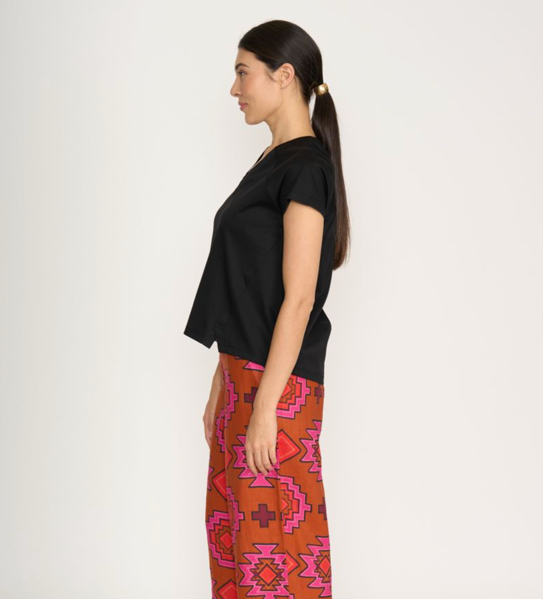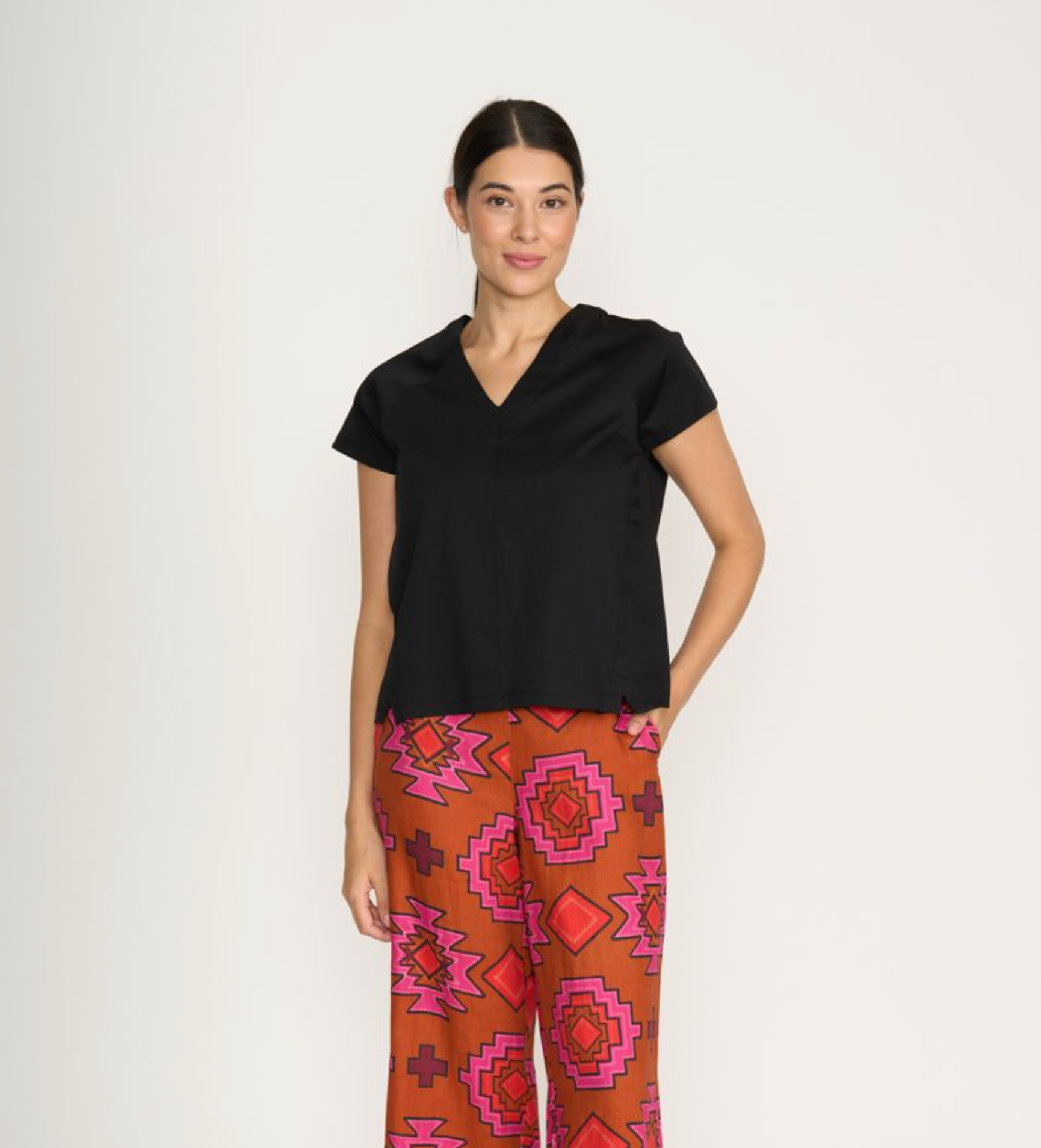 A polished everyday tee with luxe drape. Cut in 100% mercerised cotton, the Under Control Top skims the body with a subtle A-line shape. A clean V-neck and lengthening centre-front seam keep it refined, while raglan sleeves, a back yoke and a curved, slightly longer back hem add that tailored finish.