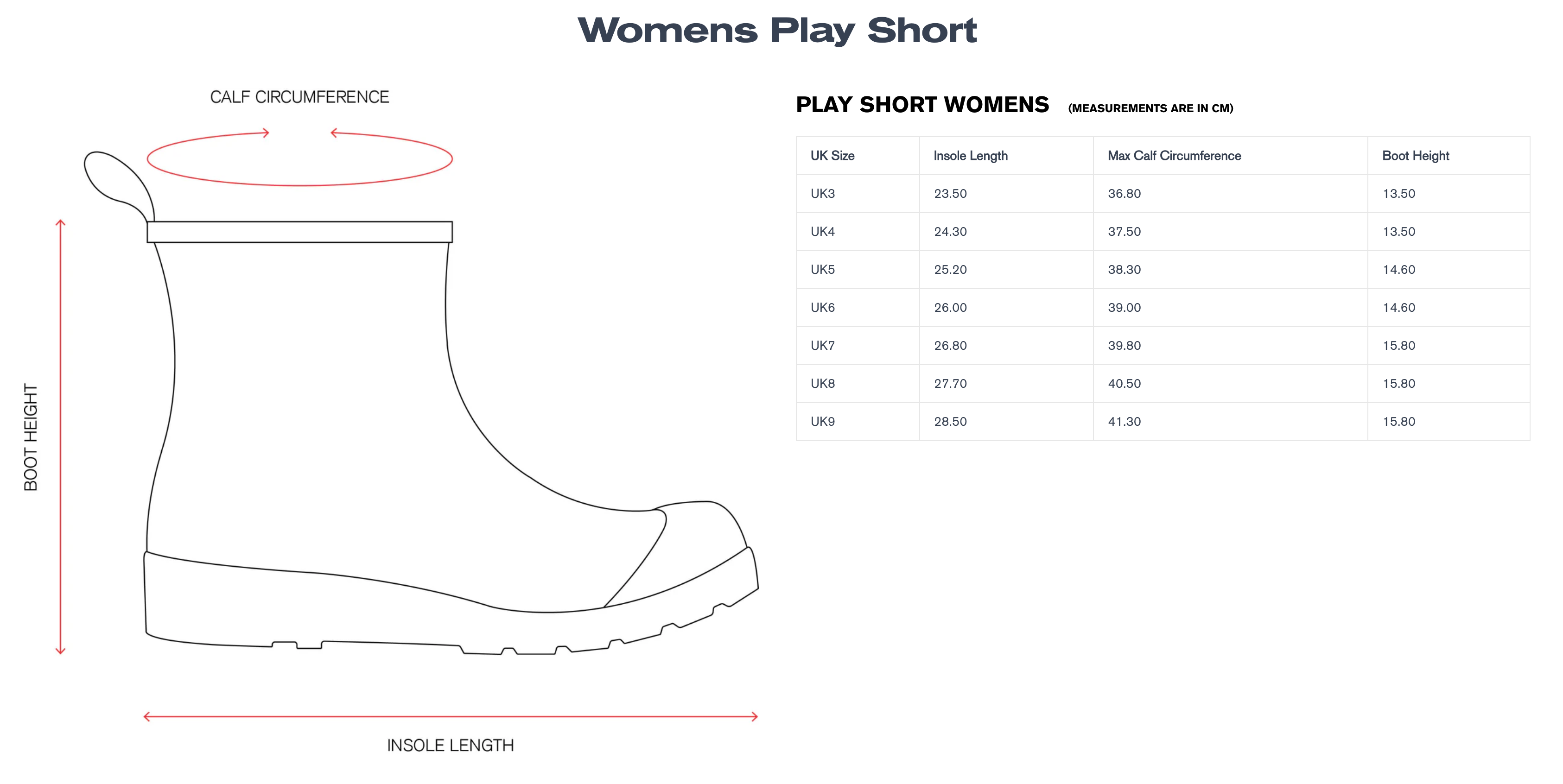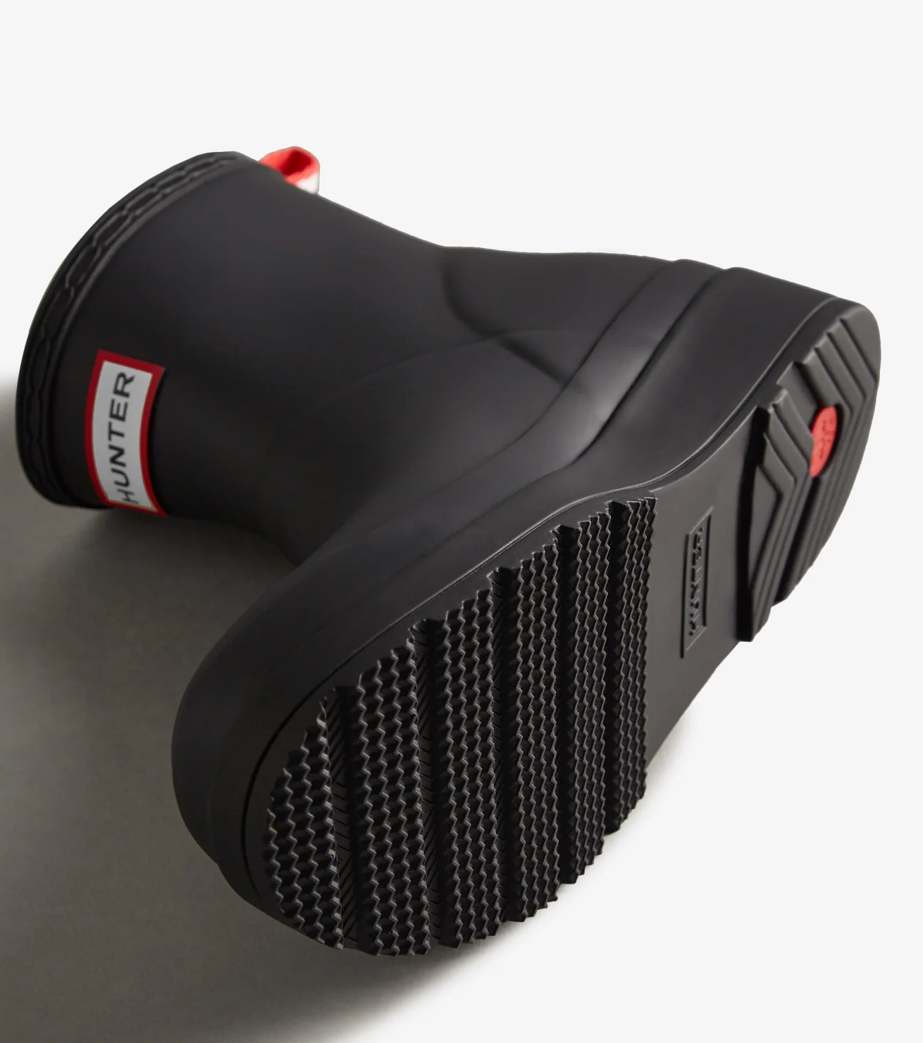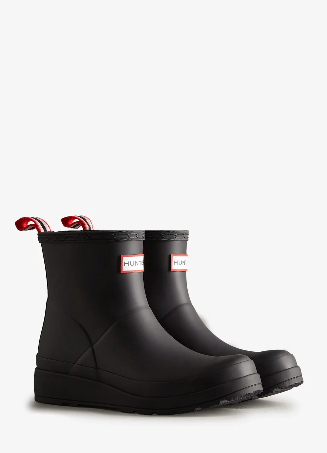 Simplifying the iconic design of the Original Boot, the Play Boot offers a dynamic silhouette with a flatter platform sole for maximum comfort and versatility. Crafted from the highest quality natural rubber, this women's wellington is 100% waterproof. Just grazing the top of the ankle, this short black boot is a stylish height that complements street style, festival flair and everything in between, so you can play it your way.