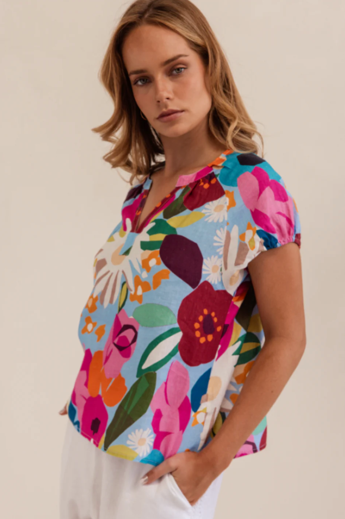 Kaleido Linen Bloom Burst Top
