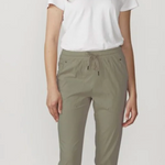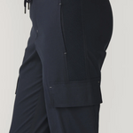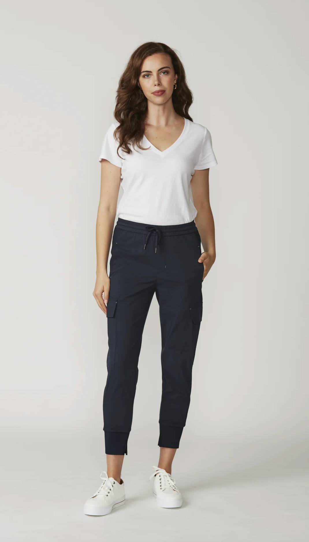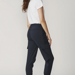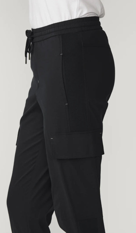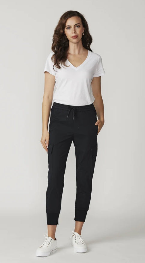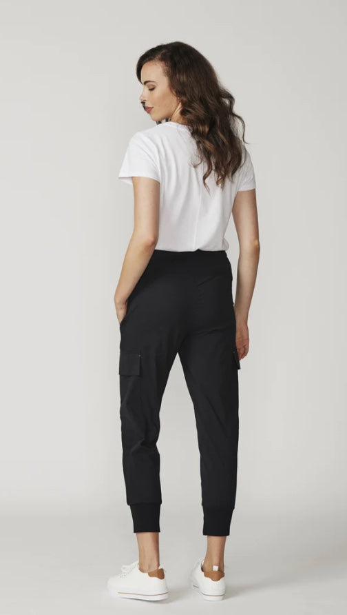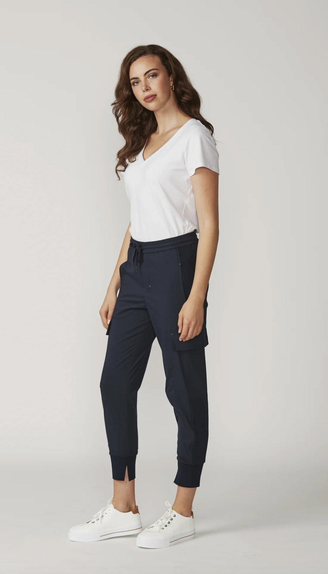 Relaxed jogger in Lania's signature LTL fabric — features knit rib side panels and hem cuffs, sleek front pockets and functional modern large pockets at outer leg. The elasticated waistband with adjustable drawcord combined with the lightweight cotton rich stretch fabric provides comfort in style.