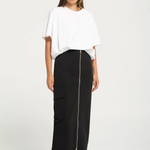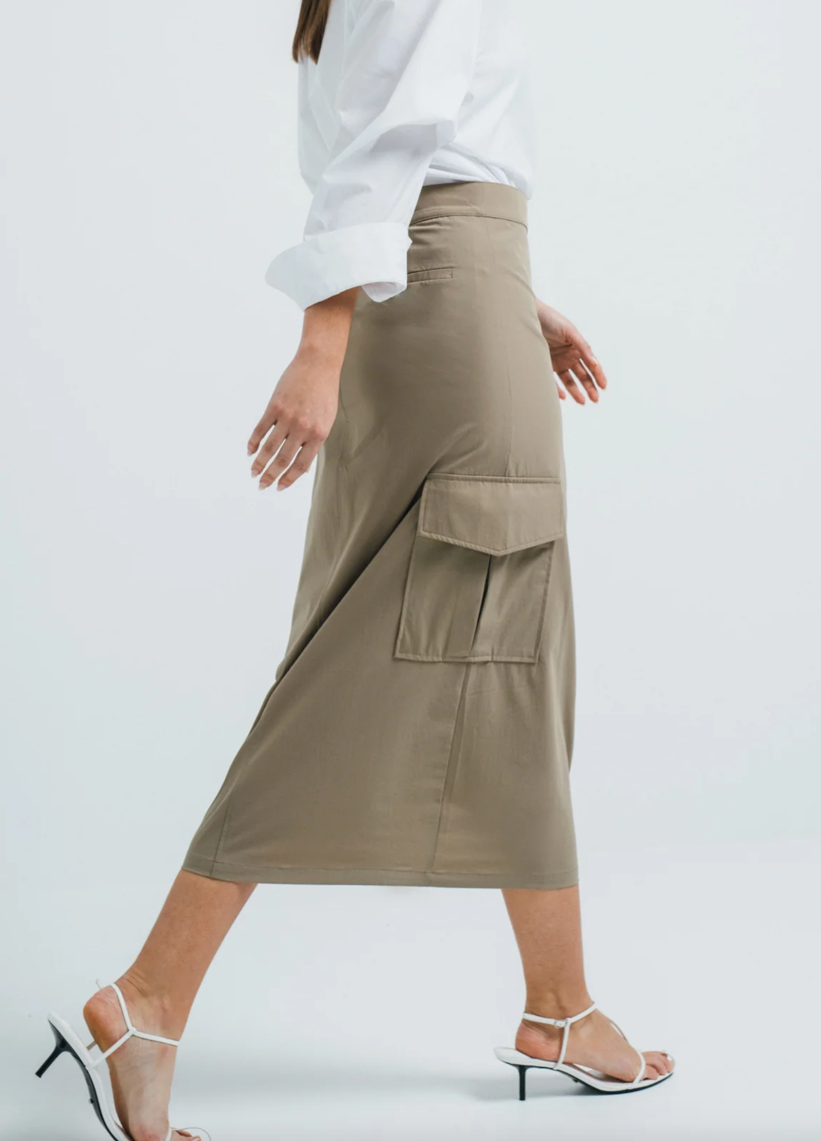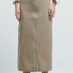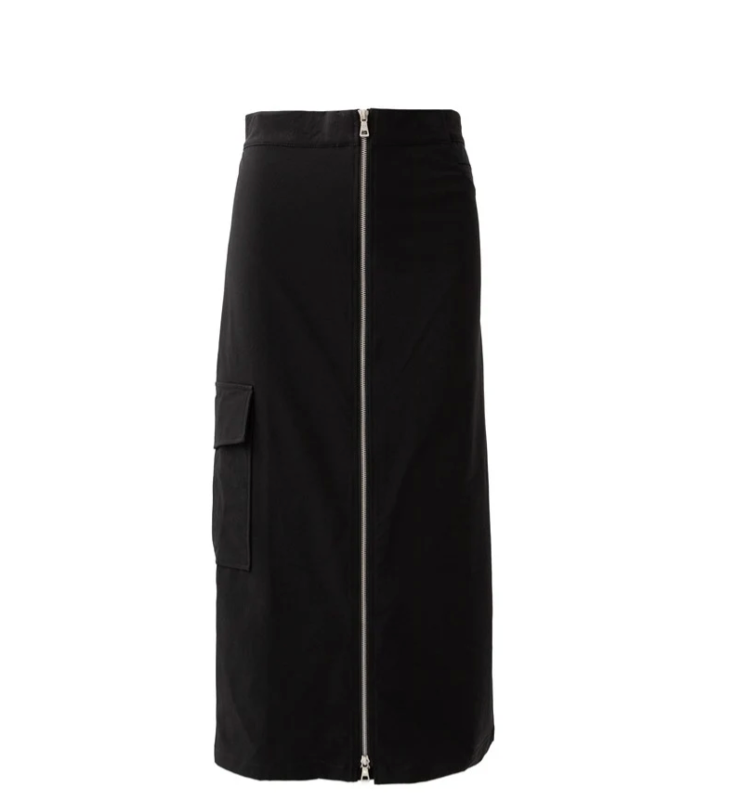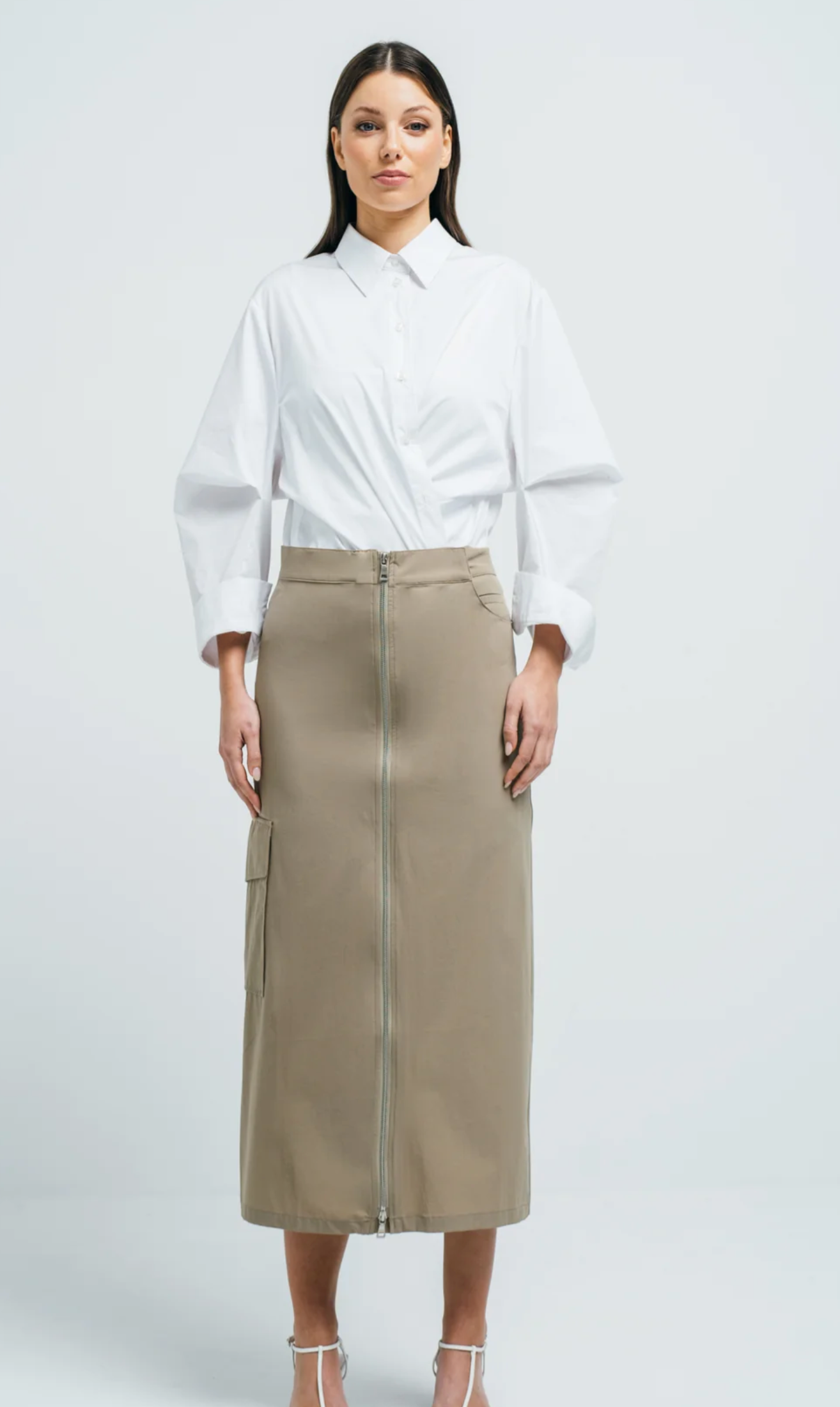 Lounge the Label Skirt Madrid is cut from their luxury stretch woven spandex . It has a dry hand feel with the ease of stretch, there are cargo pocket detail at wearers right hand side and silver metal double slider zip pull at centre front. The skirt is finished with an internal cotton fly front and studs for a flattering fit across waist and back jetted pocket detail.