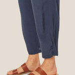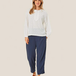 Here are the perfect trousers! The trousers are designed with a wide smock elastic at the back waist, beautiful side pockets and a cropped length with a glimpse of the ankles. It also features a nice detail with buttons in the legs that make it go in a little at the bottom. A beautiful pair of trousers that you will love season after season.