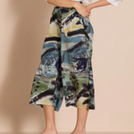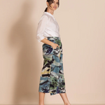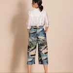 Crafted from breathable 100% cotton blend and featuring an original Megan Salmon print. These pull on pants are the ultimate in comfort and style. Cut to sit high and define the waist creating a slimming shape for most body types.