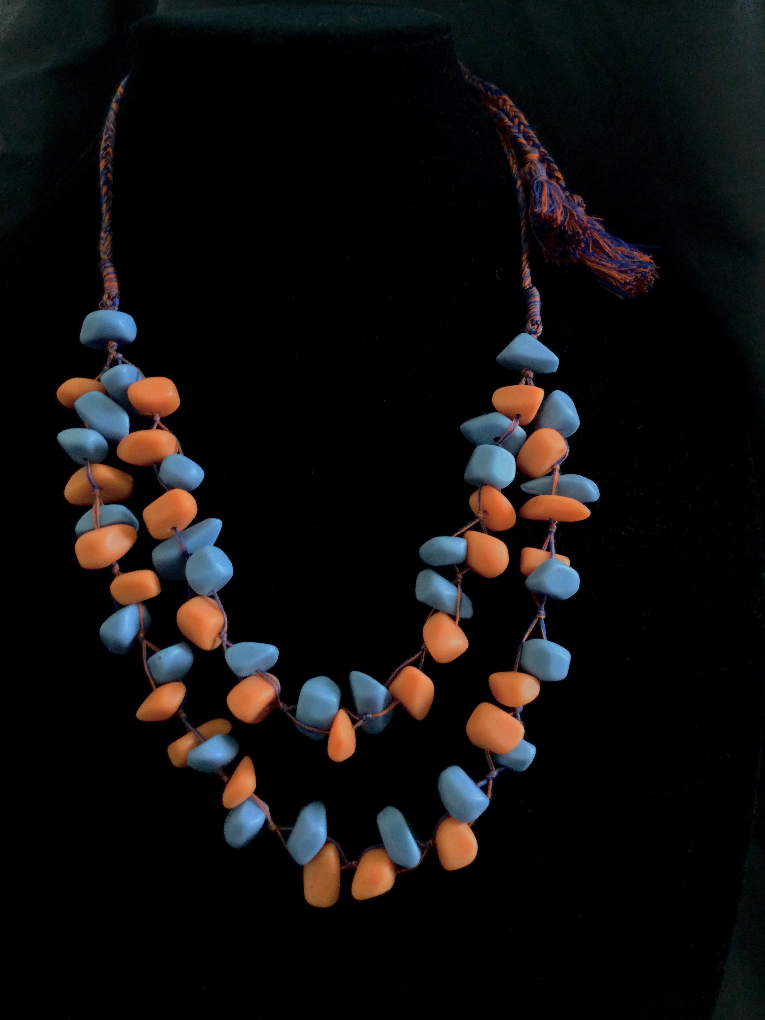 Two strand adjustable resin necklace in 2 colour ways with tassel.