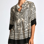 3/4 Sleeve Woodblock Print Top in Black and Ecru Print S25124