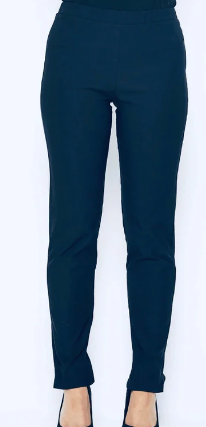 A full length slim-but-not-skinny leg stretch Bengaline pant in classic navy & black, with a cosy secret!
