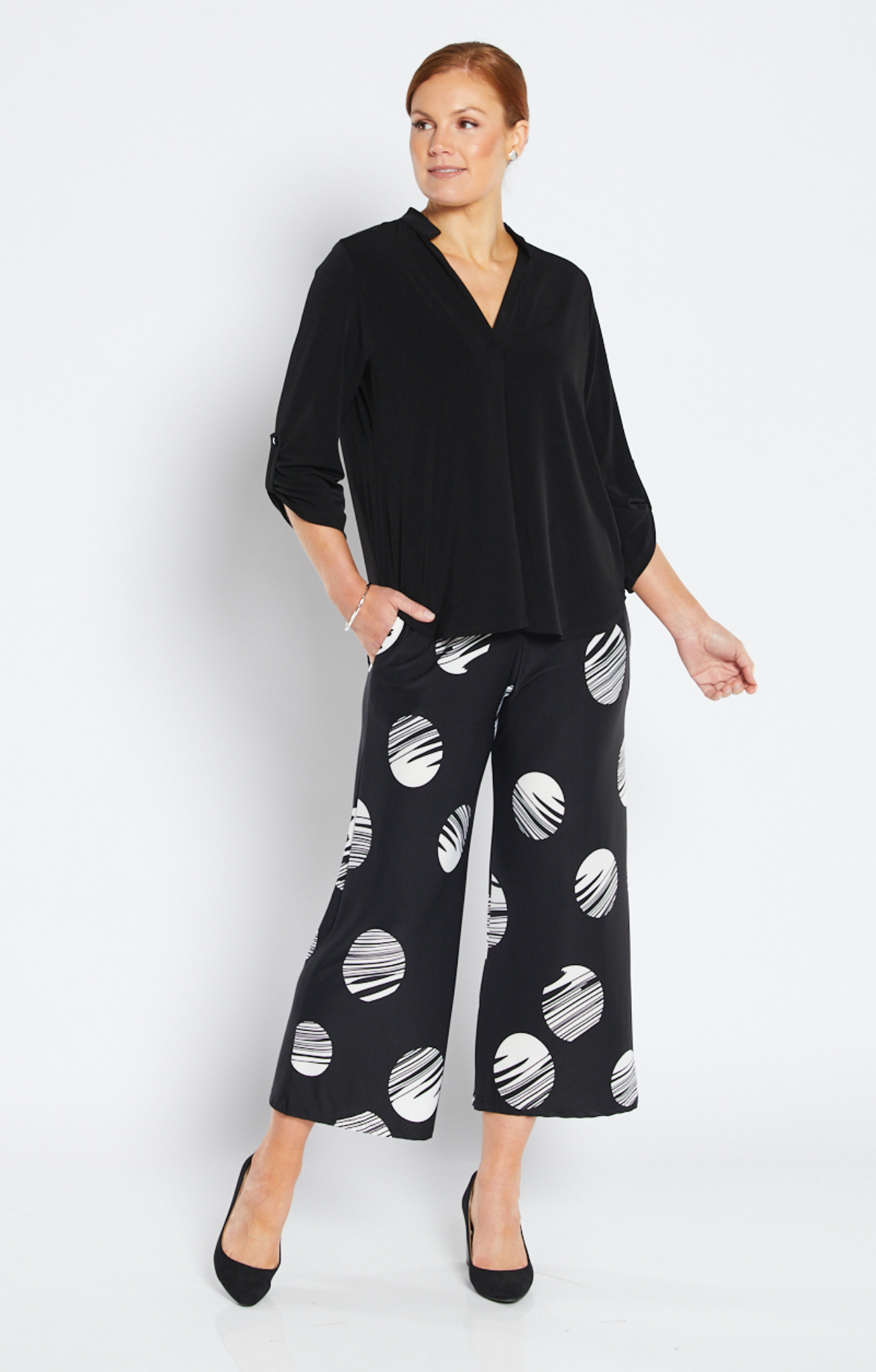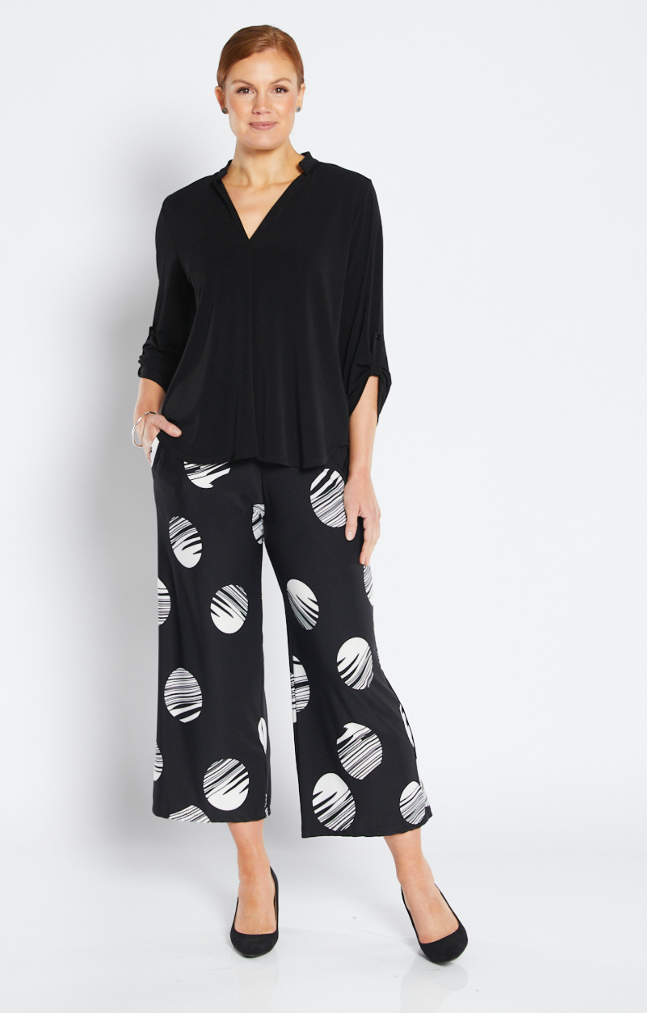 Easy wear - an elasticated waistband for pull on comfort, with pockets in classic black and white to mix and match with your wardrobe.