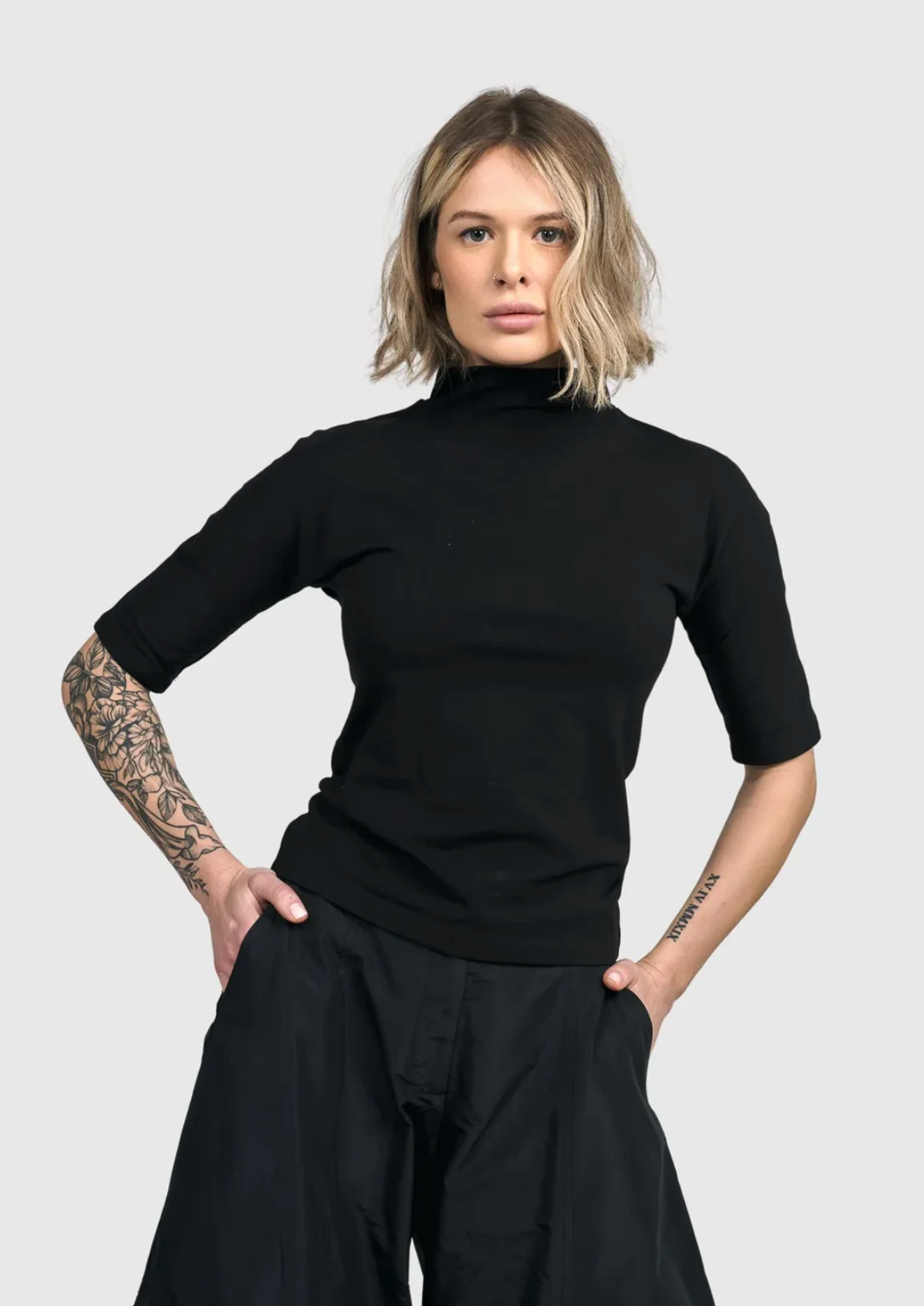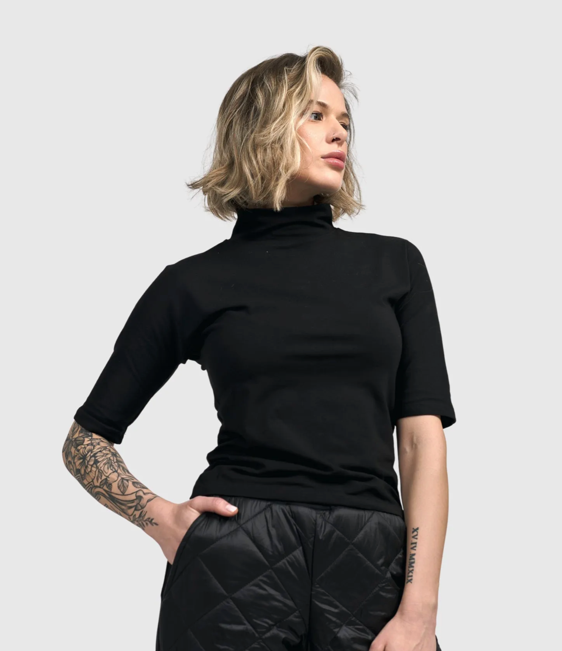 This baby-cut turtleneck tee is rendered in a soft, stretchy jersey knit that hugs your curves with a fitted look. With chic elbow-length sleeves and hip-length, it's perfect for layering or wearing solo. Ideal for any occasion, elevate your everyday style with this essential base piece.