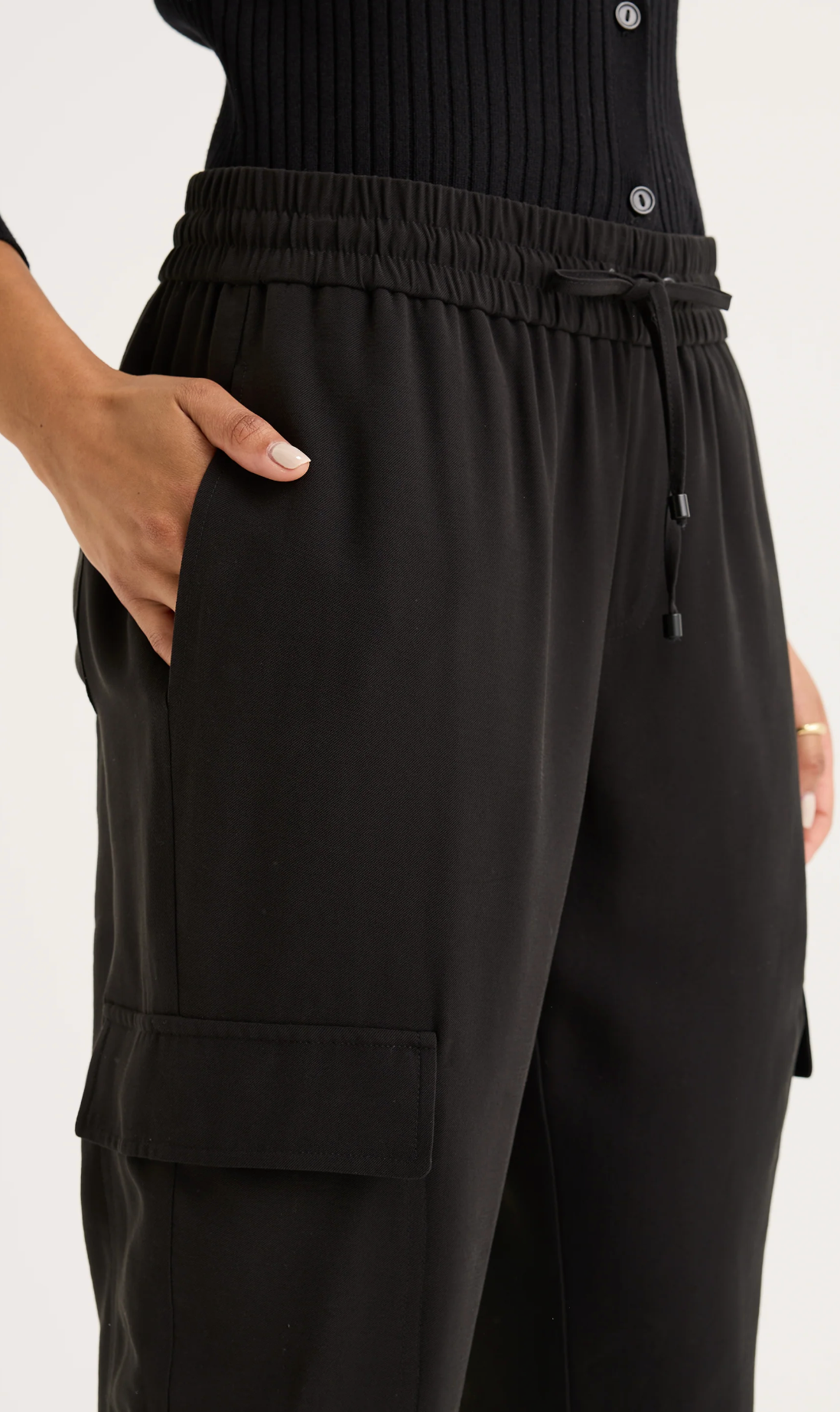 The Drift Jogger is the ideal addition to your everyday wardrobe, offering both comfort and functionality. Crafted from a soft-viscose blend, the fabric feels gentle on the skin, while set-in front slant pockets and an ankle-length cut add to its practicality. The cargo pockets on the sides give the jogger a sporty, on-trend touch. Pair it with a casual tee for a relaxed look, or elevate your outfit with a rolled-neck tank and a long cardigan for a chic, layered style.