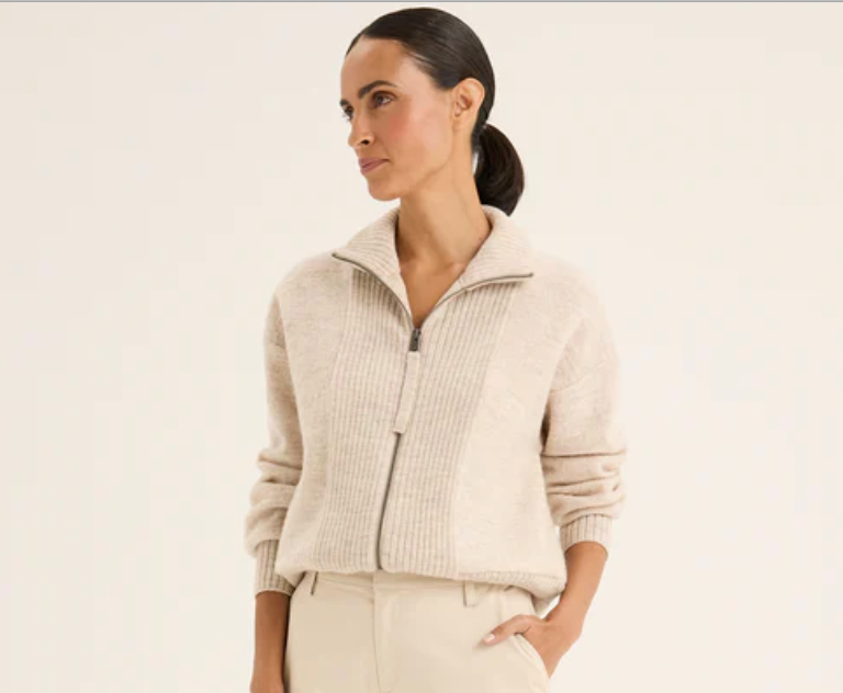 The Yarra Trail Ember Kinit Zip Jacket is expertly crafted with 100% wool for superior warmth and comfort. Its convenient zip front and ribbed cuffs and bask provide a secure fit, while the ribbed front detail adds a touch of style. Elevate your wardrobe with this must-have jacket.